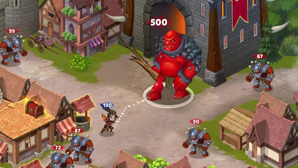 Gameplay revolves around forming and managing squads of heroes, each with distinct skills and roles. As players advance, they can recruit new characters, unlock pets that provide combat support, and summon Titans to fight alongside their guilds in large-scale events.