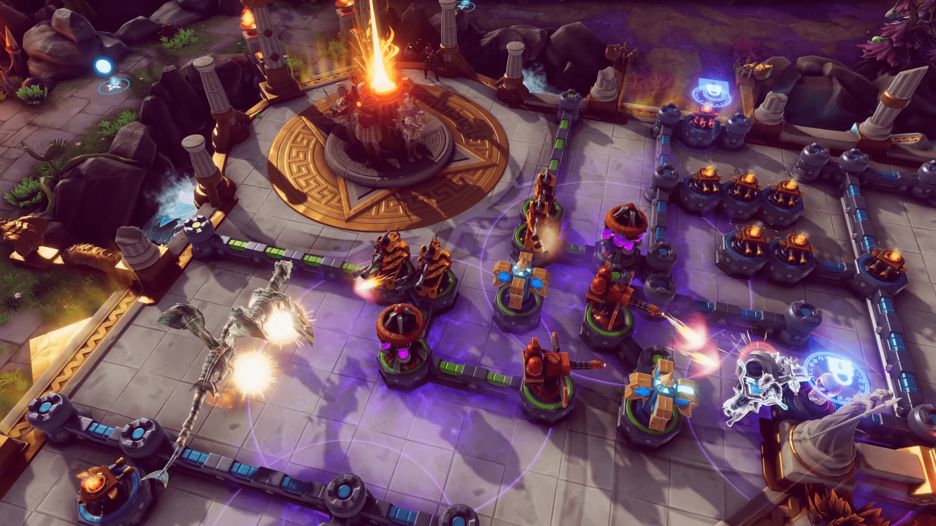 On the tower defense end of things, players build walls and towers to keep the other side at bay. Each Champion is capable of constructing their own unique tower with its own set of features, so players will want to take those into consideration when choosing who to play.