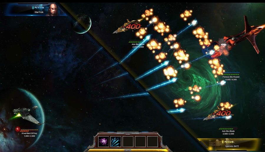 Star Trek: Alien Domination is a free to play browser based 2D strategy MMO set in the Stark Trek universe. Players must choose between siding with the Klingon Empire or the United Federation of Planets. Each faction offers unique artwork, officers and ships to take you on alien-killing adventures. The United Federation of Planets has access to Constitution-class and Defiant-class starships, while the Klingon faction offers D7 Battle Cruisers and Birds of Prey.